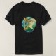 I give wanted to give this a 4 instead of a 5 because these Basic DARK T0shirts run unexpectedly SLIM or Narrow. Which is great if you do not have a potbelly, but I have a paunch. It isn't the shirt's fault that I've got a beer belly. The design and shirt itself is a quality cotton shirt. The color is more of a deep purple, but still a very pretty color. The Basic DARK T-shirts run a bit SLIMMER than the Basic Ts. The neck is a fraction narrower (or seems to be narrower) also. I'm a paunchy middle-aged woman and my neck is 12 inches (31cm) thick and the neckline fell about the same as in the photo of the man, and I had the desire to tug it a bit. So if you're a thick necked man or like loose shirts, be aware these are slimmer shirts. Once I get rid of my lockdown paunch it'll look great. The shirt washed well in cold water with no apparent bleeding. We don't have a dryer, so it hung dry. Did not shrink. Love the colors and the design. The design looks smaller on my shirt than it does on the model on-line. But still, it looks good on the shirt. The printing looks as it does on the model, just the size seems fractionally smaller. Washed garment in cold water, hung dry and design appeared unaffected.