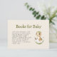 This cute baby shower enclosure card features a beige and green watercolor dinosaur hatching from its egg, below the words "Books for Baby" in green hand printed font. The editable message is in charcoal grey sans serif.
