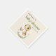 These cute baby shower napkins feature a beige and green watercolor baby dinosaur hatching from its egg, below the words "baby shower" in green hand printed font. Personalise the text with the name of the mum-to-be and the date in charcoal grey sans serif.