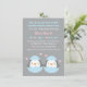 Twice the joy and twice the fun! This cute baby shower invitation has not one but two cute little baby penguins hatching from their eggs. On the reverse is a polka dots pattern over a blue background. A simple yet adorable invitation using colours of pastel blue, pink, grey. Perfect for moms to be expecting a pair of twin boys! Personalise easily with your baby shower details.