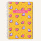 Cute and colourful pattern spiral notebook with personalised name. Perfect for diary, life journal, sketchbook, recipe book or just taking notes in class. Sweet Valentine's Day pattern with kawaii love and heart. Great for kids and teen girls. Make a great gift for back to school celebration.
