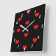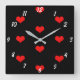 Cute Heart Pattern Red Custom Black Valentines Day Square Wall Clock