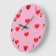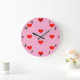 Cute Heart Pattern Red Custom Pink Valentines Day Large Clock