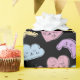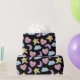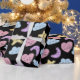 This cute design feature a black background with hearts, stars, and moons in a baby bedtime theme. Perfect for a baby shower or kids birthday.
