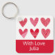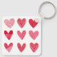 Cute hearts in red and pink with text key ring