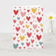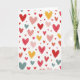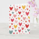 This Valentine's Day card is covered edge to edge with lots of hearts in different sizes, layered and scattered across the whole front. The hearts come in red, pink, yellow, teal, and orange, and many have a thin white outline that makes them look hand-drawn. Some hearts also have light lines inside them, adding a bit of texture without feeling busy. There aren’t any characters or a single center point, so your eyes move around and take in the full pattern like a warm shower of affection. The background is an off-white tone with a gentle paper-like texture that helps the colors stand out. ❤️💌. It feels sweet and friendly, like something you’d give to a partner, a friend, or anyone you care about 🍫.