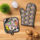 Cute Hedgehog Flowers Oven Mitt & Pot Holder Set