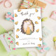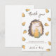 Gender neutral baby shower invitations. An illustration of a watercolor hedgehog with pear in paws, and many yellow pears. Matching items available.
