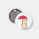 Magnet with cartoon of a cute hedgehog with torn red umbrella, standing in the rain.