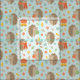Cute Fall pattern featuring Hedgehogs with Little Fall Leaves, mushrooms, pumpkins and apples on light blue background