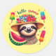 Cute hello Summer sloth Classic Round Sticker
