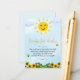 A beautiful illustration of Sun and garden with flowers and butterflies and a beautiful blue sky are the element that make this a cute gender neutral baby shower enclosure card. Part of a collection.