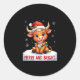 Cute Highland Baby Cow Christmas Lights Merry & Br Classic Round Sticker