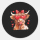 Cute Highland Cow Candy Cane Heart Valentines Day Classic Round Sticker