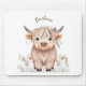 Personalised first name rustic cute modern highland cow on white background mousepad to ad a cute touch to a desk. This modern mousepad is perfect for home, or school use, making it a stylish addition to any setup.