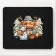 Cute Highland Cow With Snowman Hot Cocoa Christmas Mouse Mat