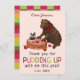Celebrate the season together with this festive postcard featuring a bow-tied hippo and a holiday pudding stacked with sweet treats. With its colourful striped border and cheeky front message—“Thank you for PUDDING UP with us this year!”—this card is a playful way for couples to share gratitude with a wink. Perfect for sending to friends, family, or anyone who’s been part of your journey, this postcard blends warmth, humour, and a dash of dessert-themed charm.