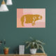 Cute Hippo Illustration in Pink and Gold Poster