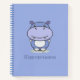 A nice blue notebook with a cute hippo and customisable text for school, office or simply to take note or write recipes at home. On the back, a hippo face is printed.