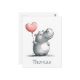 This adorable illustration features a charming cartoon hippo holding a heart-shaped balloon. The hippo's cheerful expression and the bright colors make this a heartwarming and delightful image. Personalize it with a name to create a unique gift for a loved one.