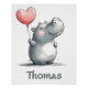 This adorable illustration features a charming cartoon hippo holding a heart-shaped balloon. The hippo's cheerful expression and the bright colors make this a heartwarming and delightful image. Personalize it with a name to create a unique gift for a loved one.
