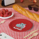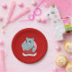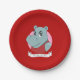 Design of illustration of a head of cute hippo in pink circle on red background, design for kids isolated