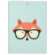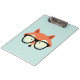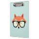 Cute illustration of a red fox wearing an oversized pair of reading glasses.