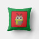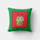 Cute Holiday Owl on Red and Green Cushion