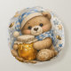Add a touch of sweetness to any room with this adorable round throw pillow featuring a cosy little bear holding a jar of honey. Surrounded by stars, cookies, and soft bedtime details, this charming illustration creates a warm, comforting atmosphere perfect for nurseries, kids’ rooms, or anyone who loves cute and whimsical decor.