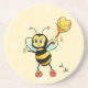 Cute Honey Bee & Monogram on Light Yellow Coaster