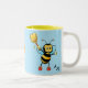 Cute Honey Bee with Heart & Monogram on Light Blue Two-Tone Coffee Mug