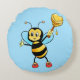 Cute Honey Bumble Bee with Heart on Light Blue Round Cushion