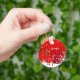 This keychain has a vector illustration design showing a red / white winter world with decorative snowflakes, snow dots, Christmas trees and a cute beautifully decorated horse. The name on this product is a template object and can be changed easily into any other name / text.
