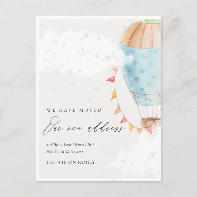 Cute Hot Air Balloon Clouds Stars We have Moved Postcard