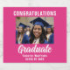 This cute hot pink and white custom senior girls graduation party champagne bottle label features your high school or college name for the class of 2025. Customise with your graduate name and year under the trendy handwritten script and grad cap for girly personalised graduation party favours.