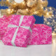 This wrapping paper features tropical palm trees in shades of pink, hot pink, magenta and fuchsia. Personalise the text.