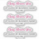 Transparent glossy labels for your products. Add your product name in a pretty hot pink script, and additional info like weight or size in a clean font.