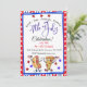Get ready to wow your party guests with this cute 4th of July invitation showcasing a human hot dog and a human slice of pizza proudly waving an American flag.