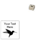 Nature rubber ink stamp design with image silhouette of a hummingbird with wings and text template you can replace with your own words, message, or saying. Designed as an envelope stamp, nature stamp, or just something fun kids can play with.
