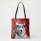A terrific and cheerful red buffalo plaid creates a fun seasonal tote bag to carry around gifts, shopping, toys, food, you name it and all while showing off your beloved Siberian Husky dog.