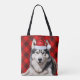 Cute Husky Christmas Dog Red Buffalo Plaid Tote Bag