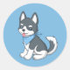 Cute Husky Puppy Dog on Blue Classic Round Sticker