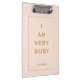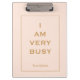 Chic stylish Personalised Clipboard with the phrase "I am very Busy" in Blush pink background and gold letters.