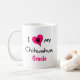 Start your day with this cute mug full of coffee and love. I Love my Chihuahua quote that you can add pet's name too is a perfect gift for a Chihuahua lover or perfect for you! Cute paw print with handwritten font makes a charming mug. Customisable on both sides to add your dog or 2 dogs name.