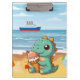 Cute ice cream eating dino at the beach clipboard