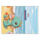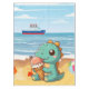 Cute ice cream eating dino at the beach tablecloth