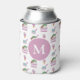 Ice cream desserts illustrated pattern on white monogrammed can cooler.