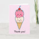 Cute thank you note with an illustration of a happy ice cream. Two scoops of ice cream stacked on top of each other with sprinkles and a cherry on top. One scoop is smiling and the other looks squished, even the cherry on top is smiling. Check on all the matching products in the Super Cute Kawaii Store.
