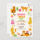 This design features illustrated tigers, leopards, among colourful balloons, birthday gifts,s and party hats paired with modern typography. All text on this birthday invitation is editable. Find matching items in my shop.