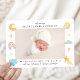 Celebrate your little one’s arrival with this adorable Cute In the Clouds Rainbow & Stars Photo Birth Announcement. The design showcases your baby’s horizontal photo surrounded by whimsical watercolor illustrations — including a smiling blue cloud, colourful rainbows, a crescent moon, a shooting star, and pink hearts — all on a white background. The back is left blank, giving you the option to write a personal note or keep the announcement beautifully simple. A sweet choice for baby girls, boys, or gender-neutral announcements!